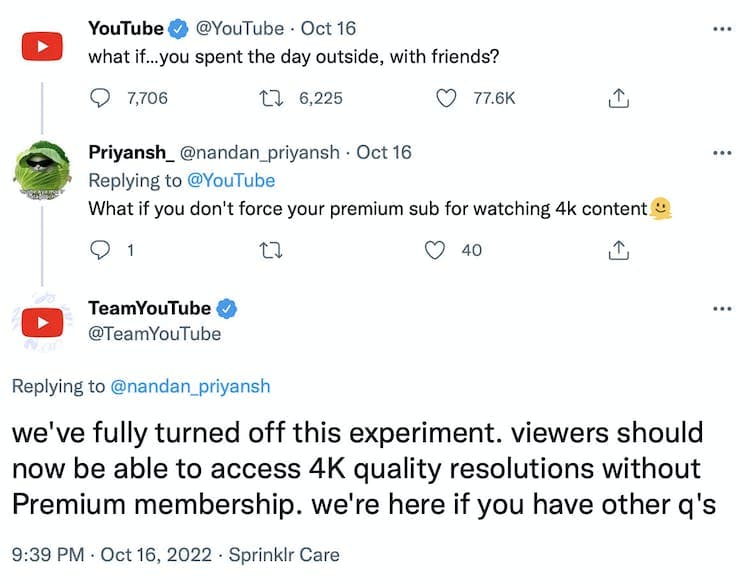 Google har bekräftat att testet som gömde 4K-upplösningen bakom en dyr Premium-prenumeration för vissa användare har avslutats.