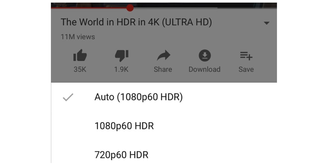 Antalet har vuxit stadigt till idag när YouTube äntligen aktiverar HDR-stöd för iPhone XS och iPhone XS Max. Videor som stöder HDR har en liten ”HDR”-märkning vid sidan av visningen av upplösningen.