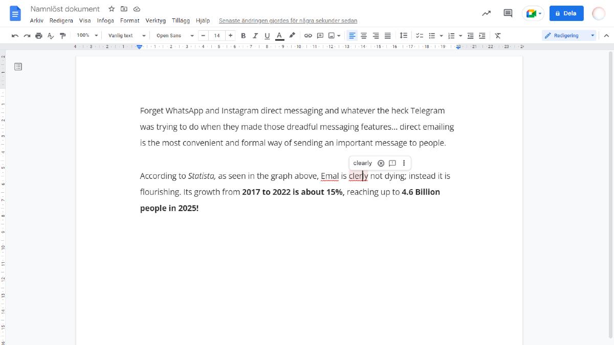 Google har förbättrat sin grammatikcheck till den grad att Docs ger en utmärkt bas att börja med för redigering, lagring och säkerhetskopiering av dina texter. Utan att det kostar dig en enda krona. En grundläggande rättstavning är bara en fin bonus tycker vi.