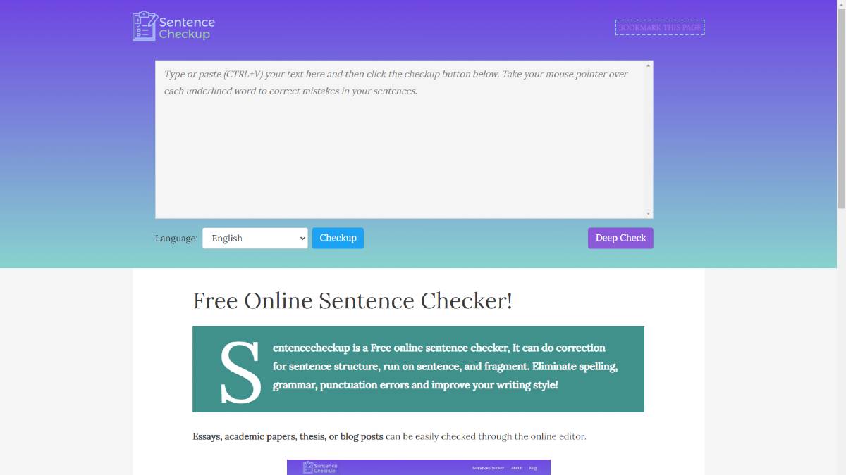 Sentence Checkup är det kanske enklaste och smidigaste verktyget för rättstavning av engelska. Bara klistra in din text, klicka på knappen ”Checkup” och du får en grundläggande koll av din text.
